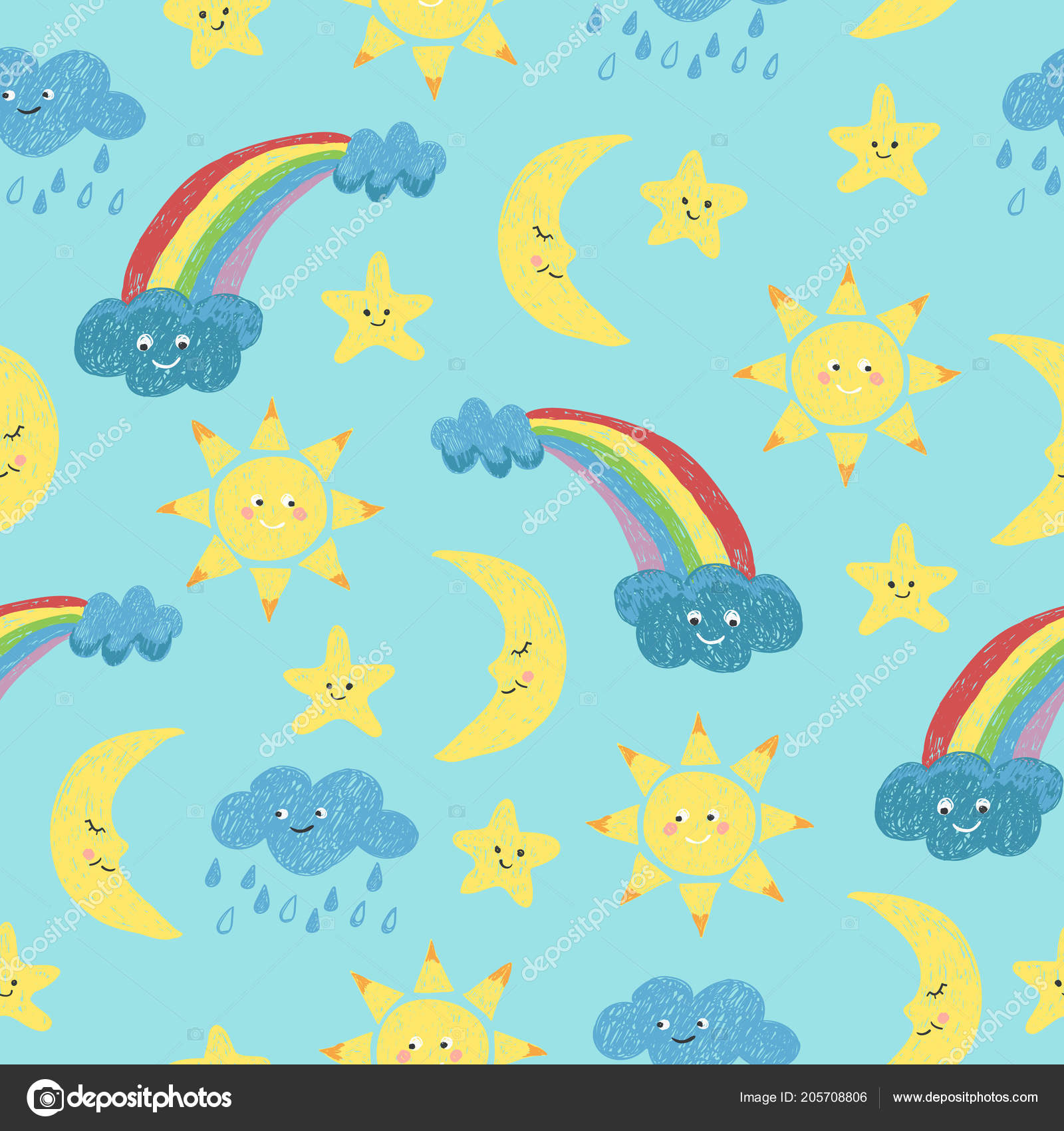 Sole E Luna Vettoriale Senza Soluzione Di Continuita Con Le Stelle Stile Vintage Carta Da Parati Carta Da Imballaggio O Disegno Del Tessuto Per I - Download