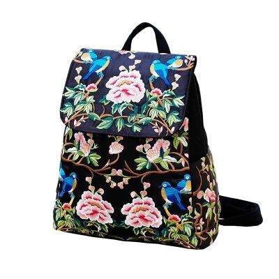 Zaino Per Donna Da Viaggio Con Ricamo Moda Bel Tessuto Floreale Ricamato Con Motivi Floreali Per Fare Shopping Backrack All Match Canvas Hasp Lady - Download