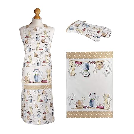 Spotted Dog Gift Company Set 3 Strofinacci Da Cucina Grembiule E Guanto Da Forno Bel Disegno Di Gatti Idee Regalo Donna Originale Per Gli Amanti Dei - Download