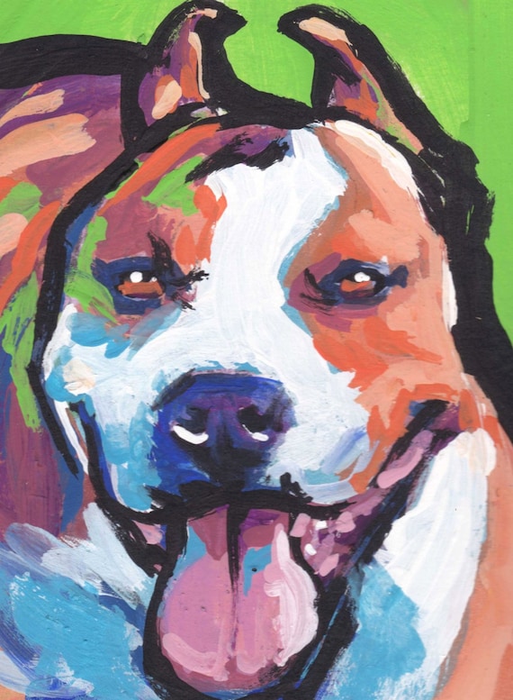 Amstaff Americano Staffordshire Terrier Cane Arte Stampa Di Pop Art Pittura Colori Vivaci 13x19 - Download
