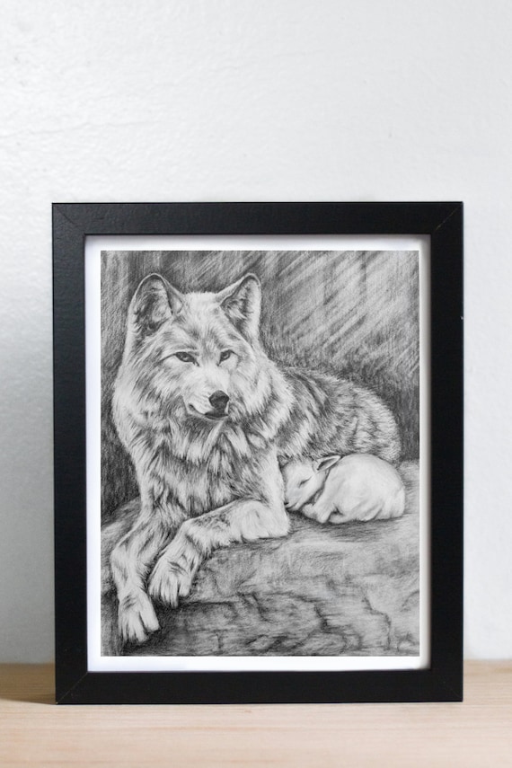 Lupo E Agnello Matita Disegno Giclee Art Stampa Fine Art Illustrazione Parete Arte Christian Lupo Agnello Disegno Wildlife Art Parete Decor Home Decor - Download