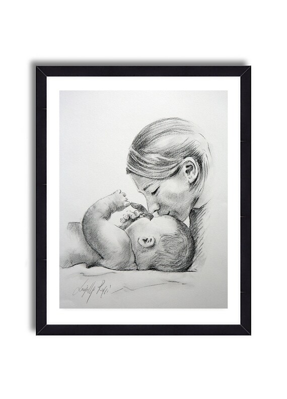 Disegno Originale Matita Carboncino Amore Regalo Per Lei Mamma - Download