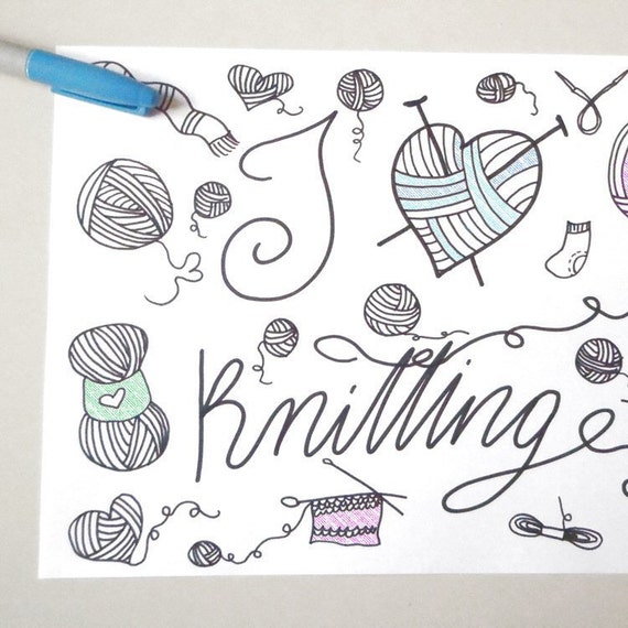 I Love Knitting Coloring Book To Knit Yarn Instant Download Craft Colouring To Knit Meditation Zen Printable Print Digital Lasoffittadiste - Download