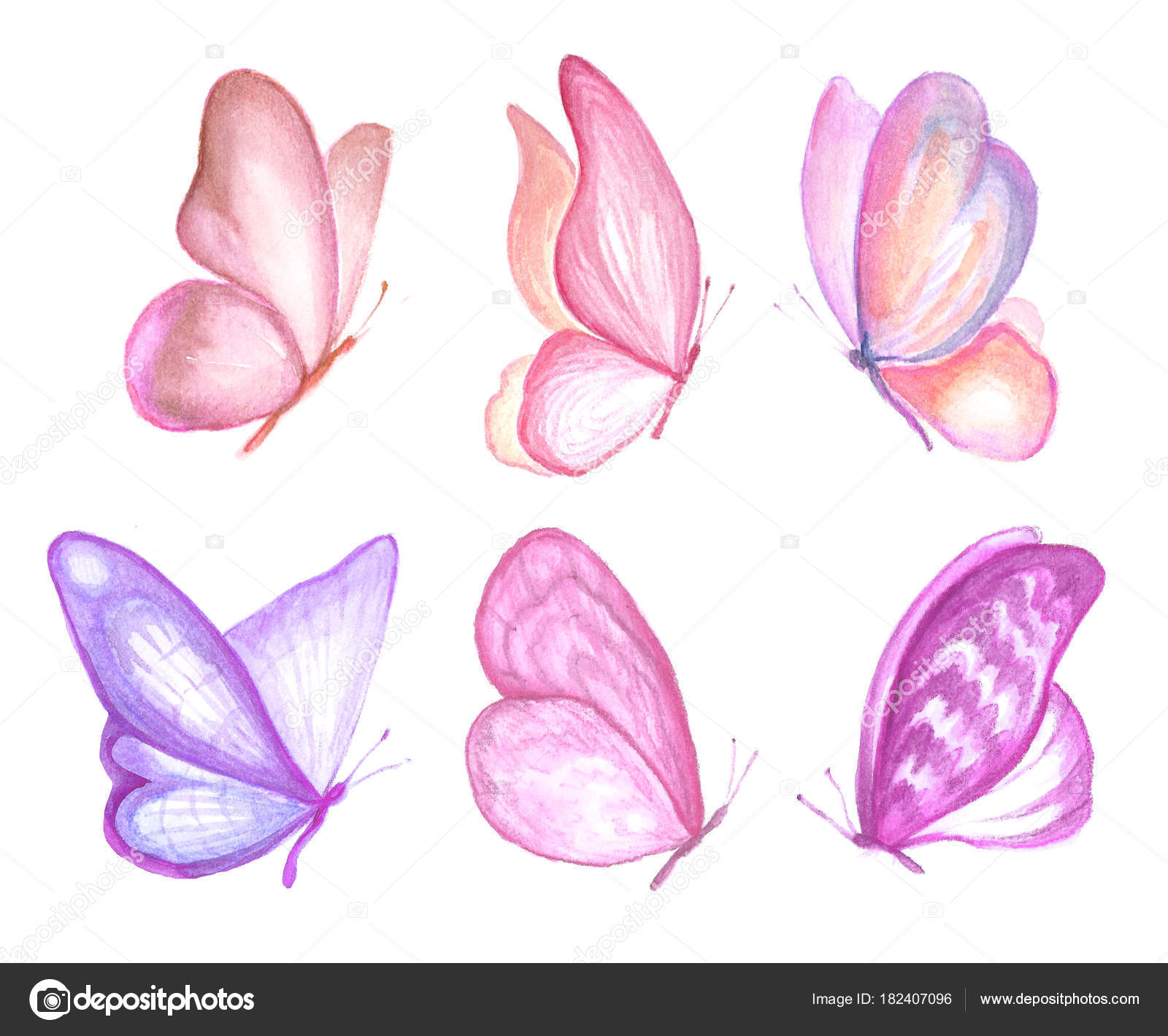 Acquerello Di Collezione Di Farfalle Di Volo Foto Stock - Download