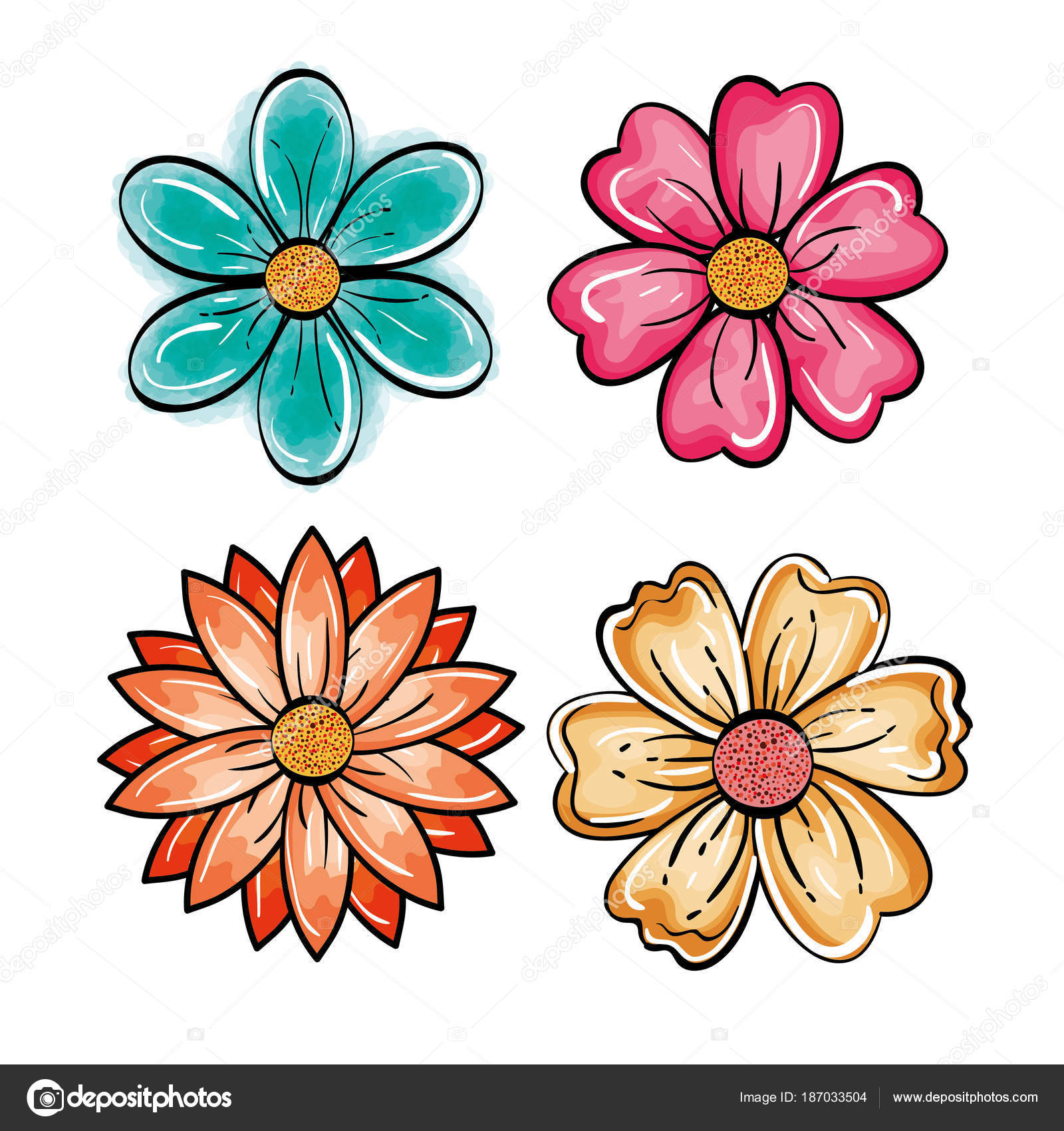 Set Di Fiori Colorati Stilizzati Immagini Vettoriali Stock - Download