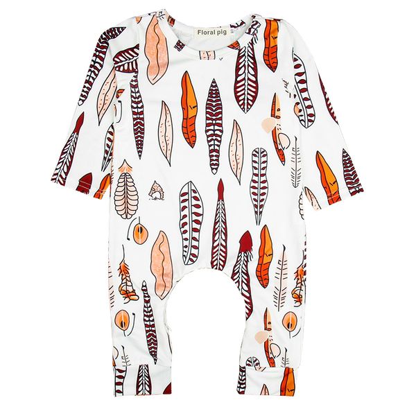 Acquista Floreale Pig Baby Pagliaccetti Di Piume Foglie Disegni Di Piume Stampati Autunno Manica Lunga O Collo Tute Onesies Neonati Ragazzi Ragazze - Download