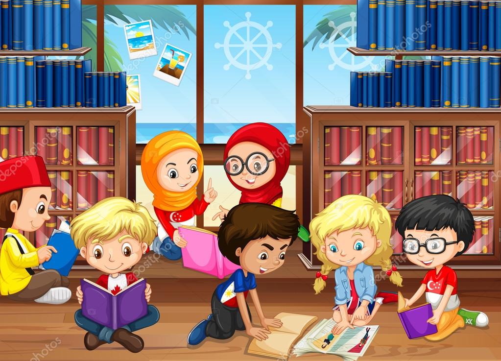 Bambini Che Leggono Libri In Biblioteca Scarica Immagini - Download