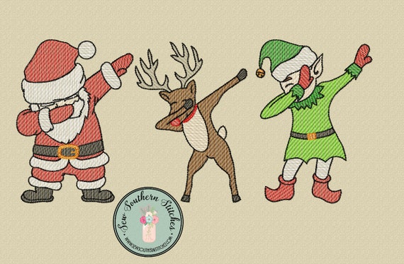 Riempimento Tamponando Babbo Natale Elfi Renne Trio Ricamo Disegno Schizzo Danza Natale Vacanza Trio Download Immediato - Download