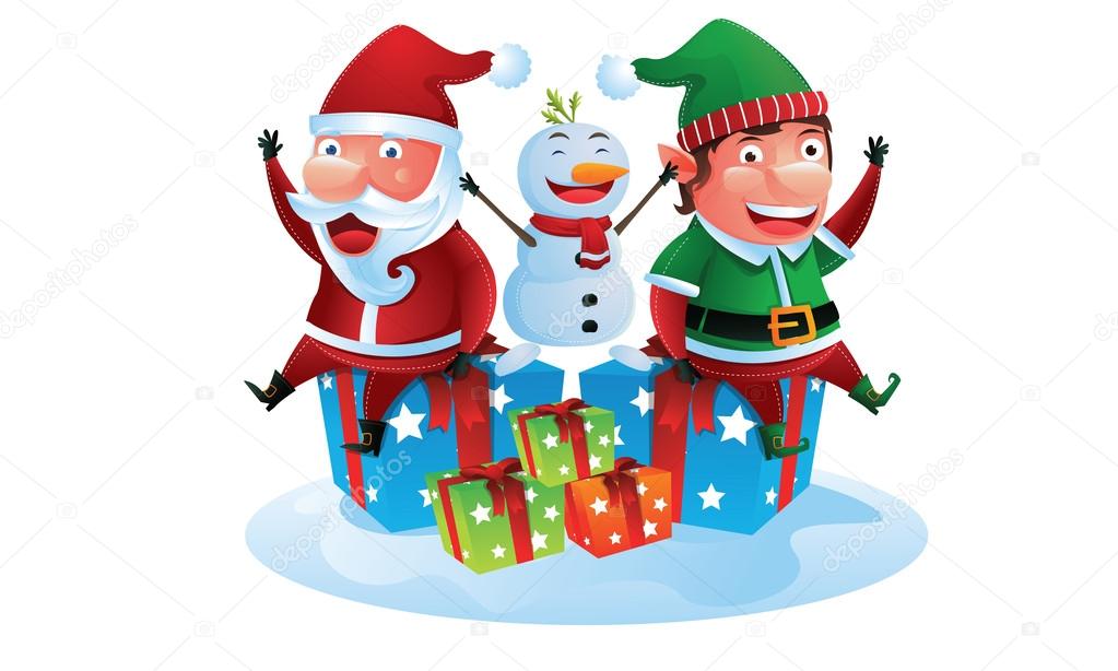 Babbo Natale Companio Elfo E Pupazzo Di Neve Con Scatole - Download