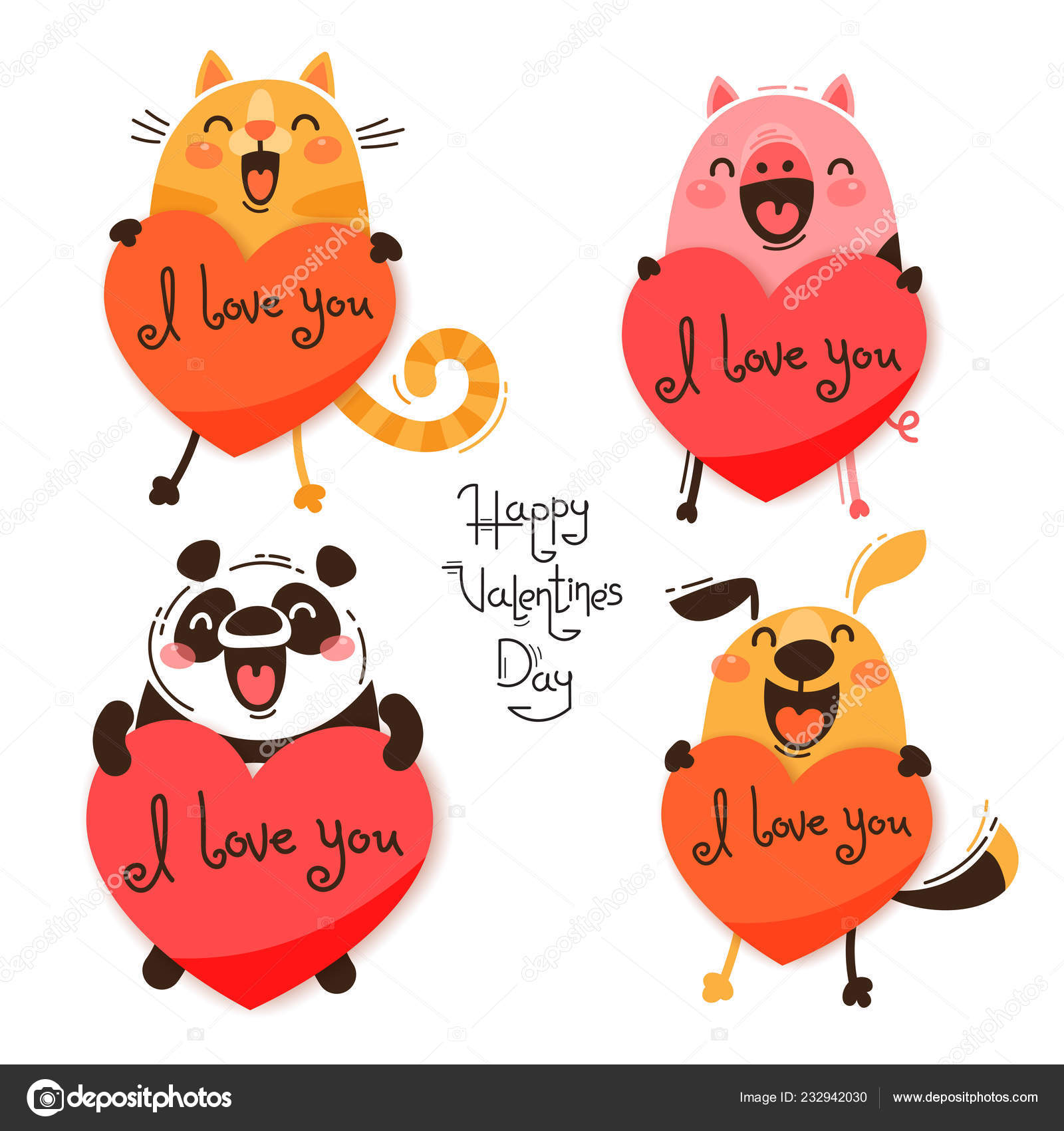 Insieme Degli Animali Svegli Con San Valentino Cane Maiale - Download