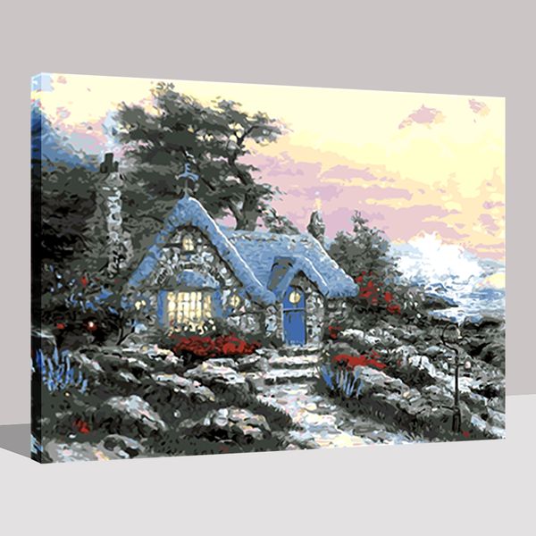 Acquista Paese Citta Paesaggio Pittura Fai Da Te Con I Numeri Wall Art Disegno Da Colorare Casa Di Neve Immagini Ad Olio Su Tela Home Decor Regalo - Download