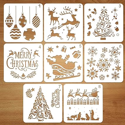 Kit Da Disegno Per Stencil In Plastica Riutilizzabile Di Natale Set Di 8 Babbo Natale Albero Di Natale Fiocchi Di Neve Campane Renna Stencil Per La - Download