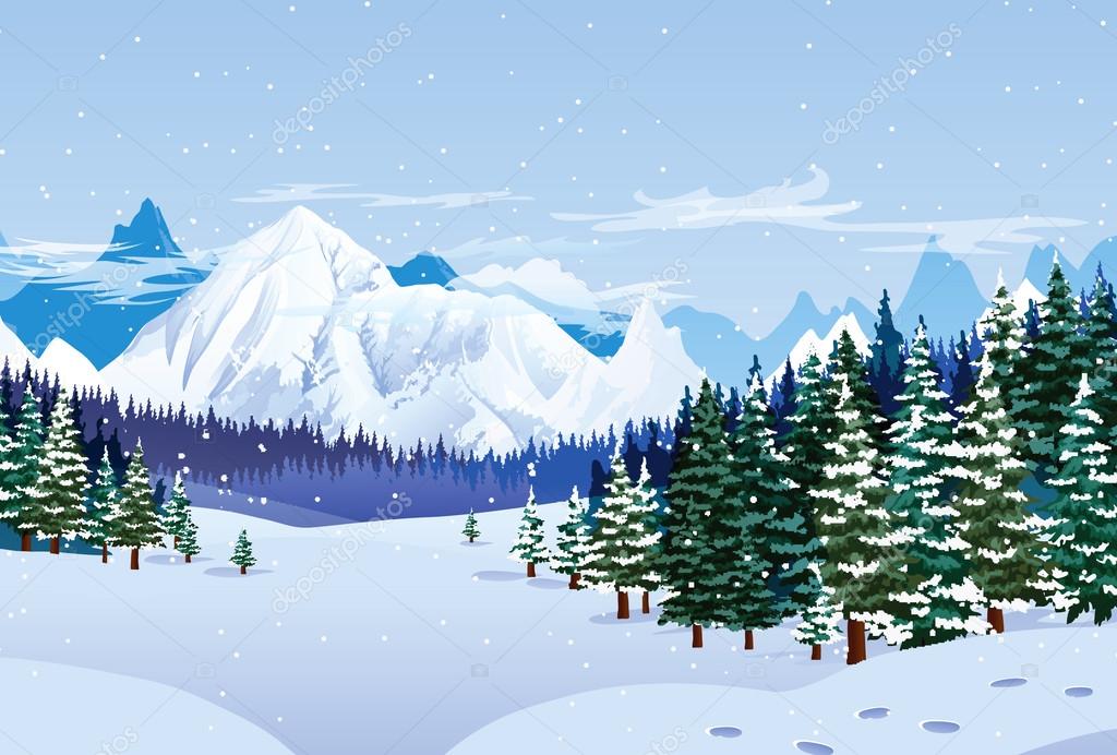 Illustrazione Di Albero Di Pino In Inverno E Neve Montagna - Download