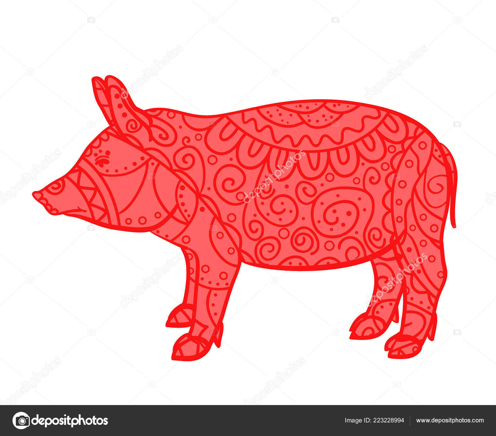 Maiale Colorato Bianco Zentangle Animale Con Intricati - Download
