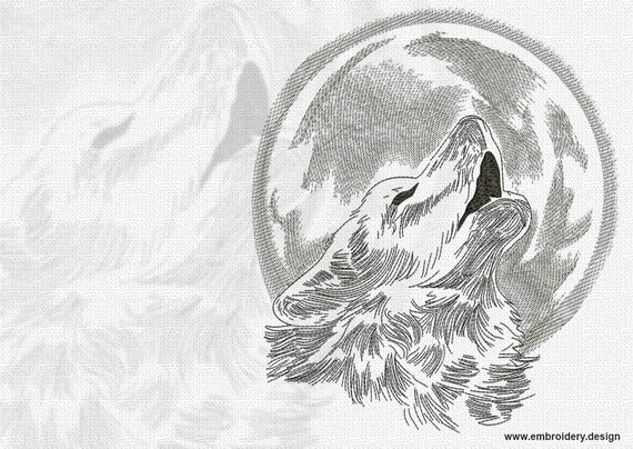 Lupo Che Ulula Il Ricamo Di Luna Design Scaricabili 4 Grandezze - Download