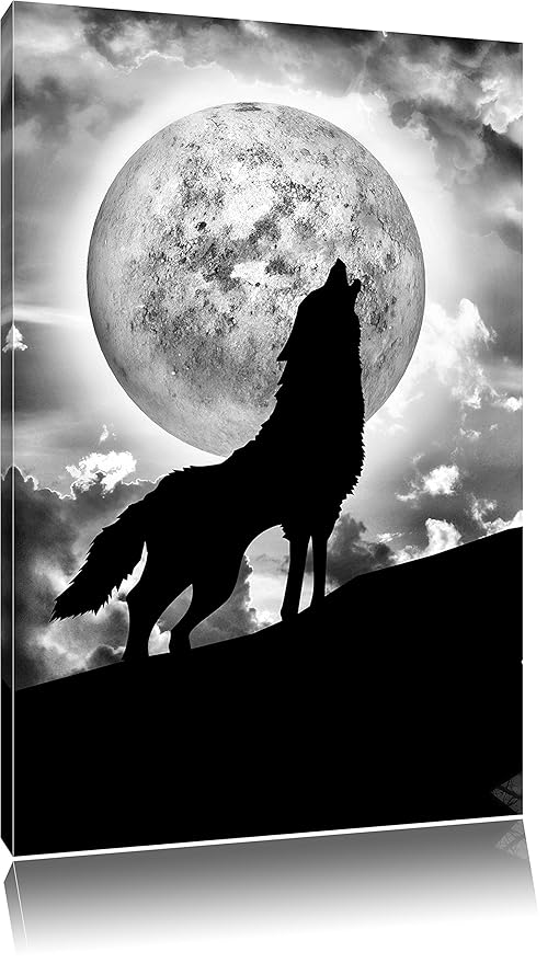 Pixxprint Lupo Che Ulula Alla Luna Stampa Su Tela 120x80 Cm Artistica Murale - Download