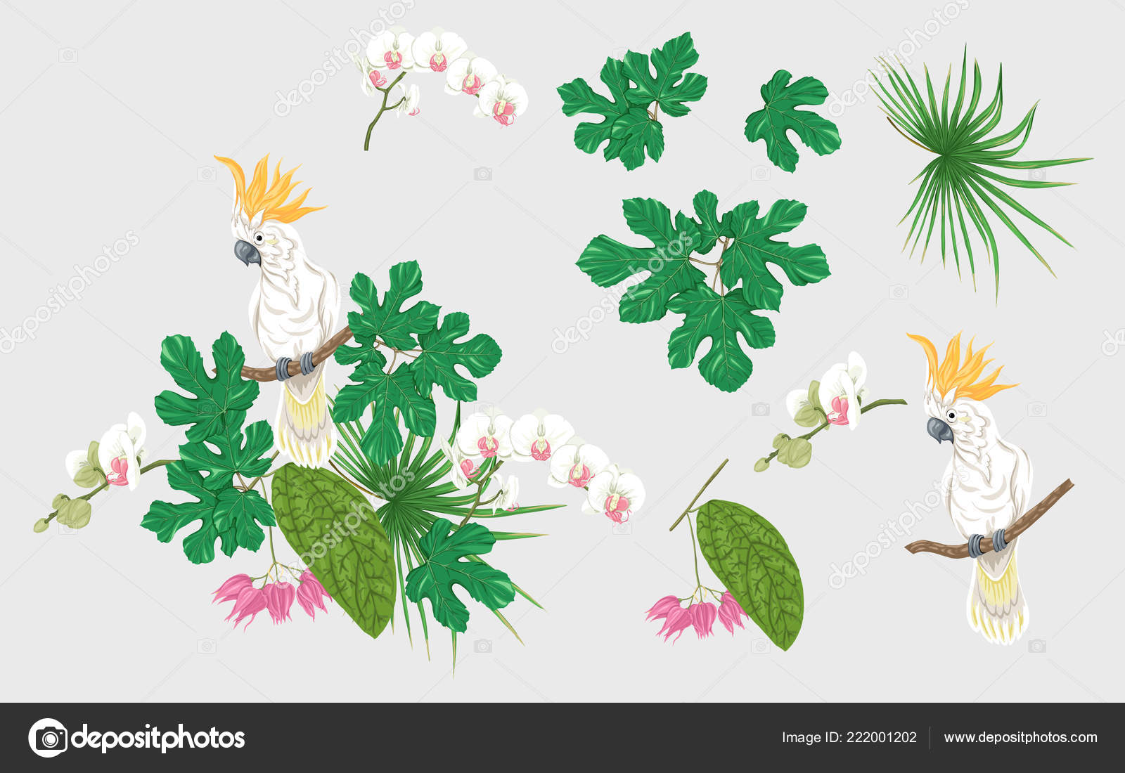Set Elementi Disegno Con Piante Tropicali Foglie Palma - Download