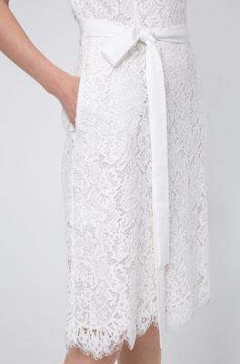 Vestito In Pizzo Con Scollatura A Girocollo E Cintura Lucida - Download
