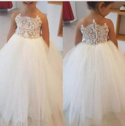 2018 White Flower Girl Dresses Unico Disegno Del Corpo Superiore E Gioiello Collo In Pizzo Appliquato Con Semplici Abiti Da Ragazza In Tulle - Download