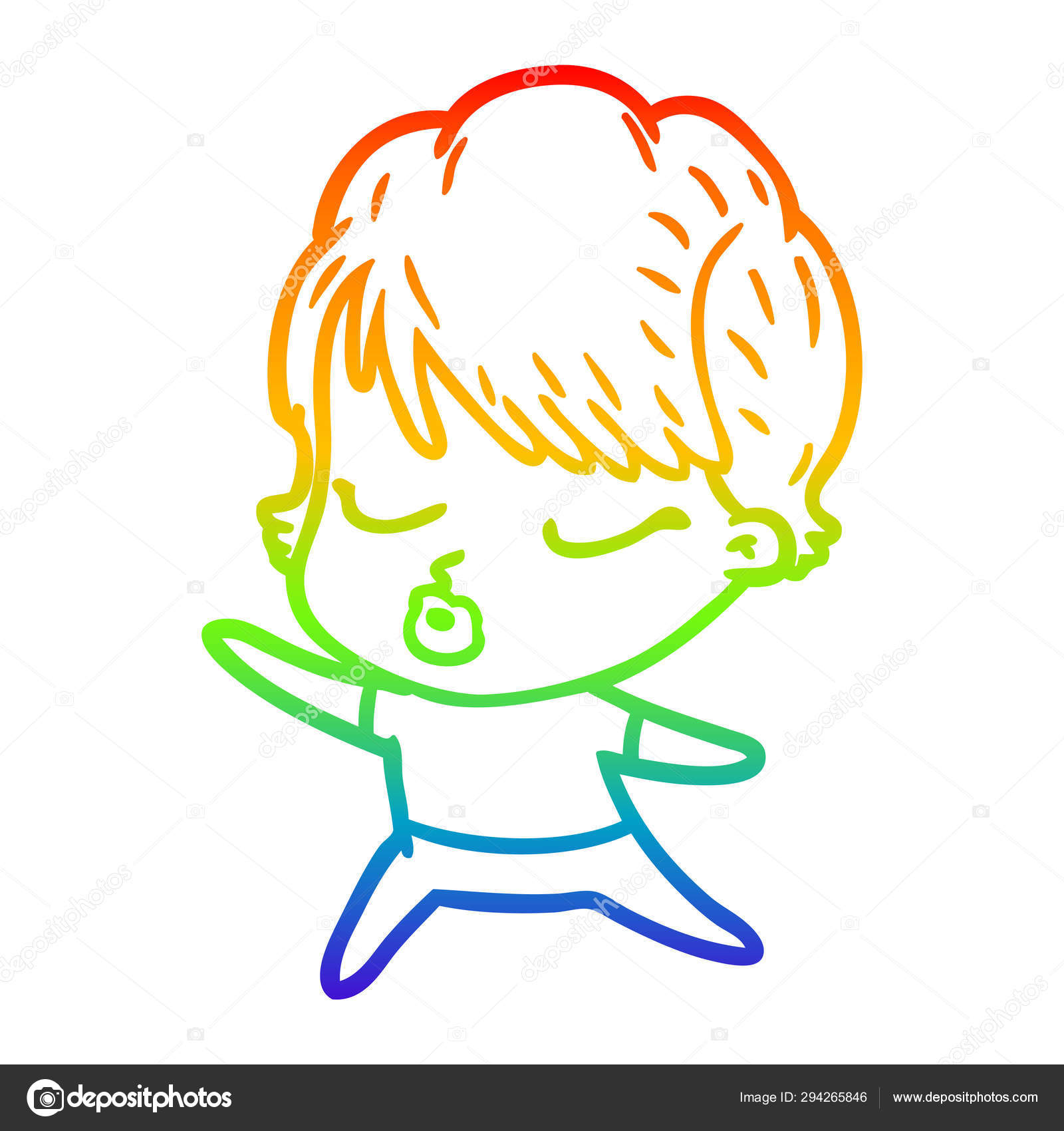 Arcobaleno Gradiente Linea Disegno Donna Cartone Animato Con - Download
