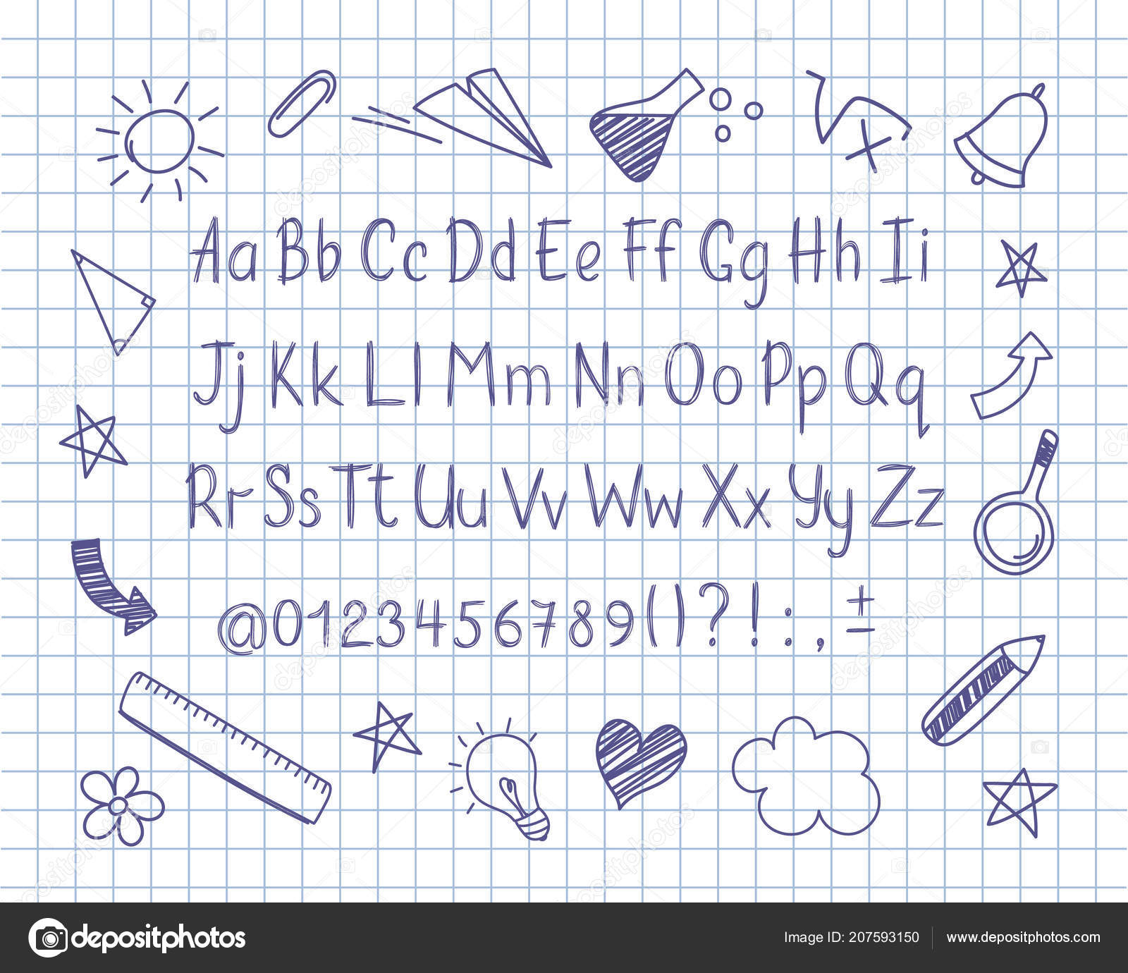 Alfabeto In Stile Abbozzato Con Scuola Doodles Sul Foglio Di - Download