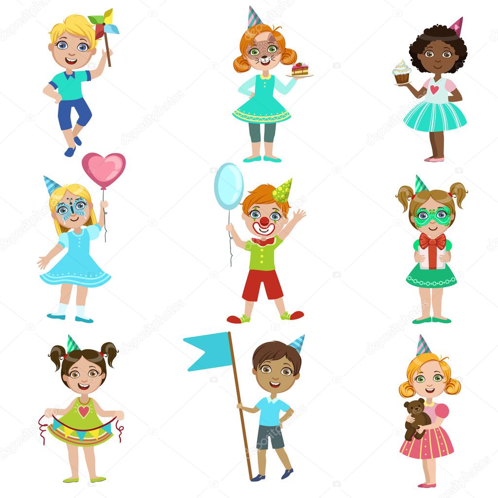 Bambini Sulla Festa Di Compleanno Insieme Vettoriali Stock - Download