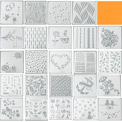 Lirener Set Di 24 Forma Quadrata Fai Da Te Template Stencil Set Gatto Fiore Motivi Geometrici Disegno Template Bullet Journal Stencil Set Per - Download