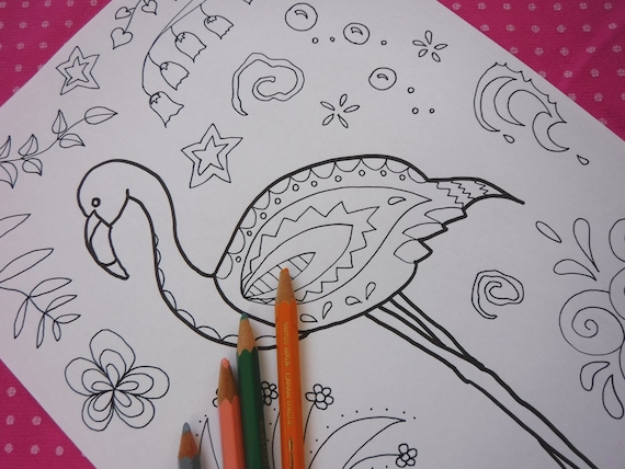 Fenicottero Disegno Colorare Adulti Bambini Tropicale Da Etsy - Download