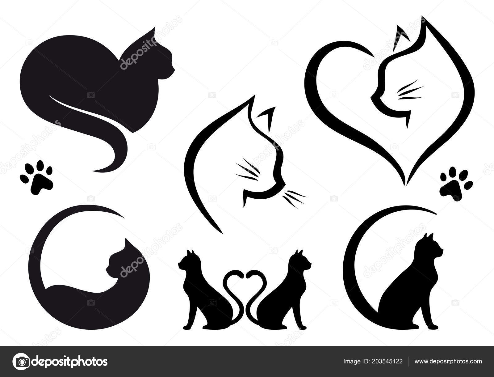 Disegni Marchio Gatto Con Cuore Insieme Elementi Grafica - Download