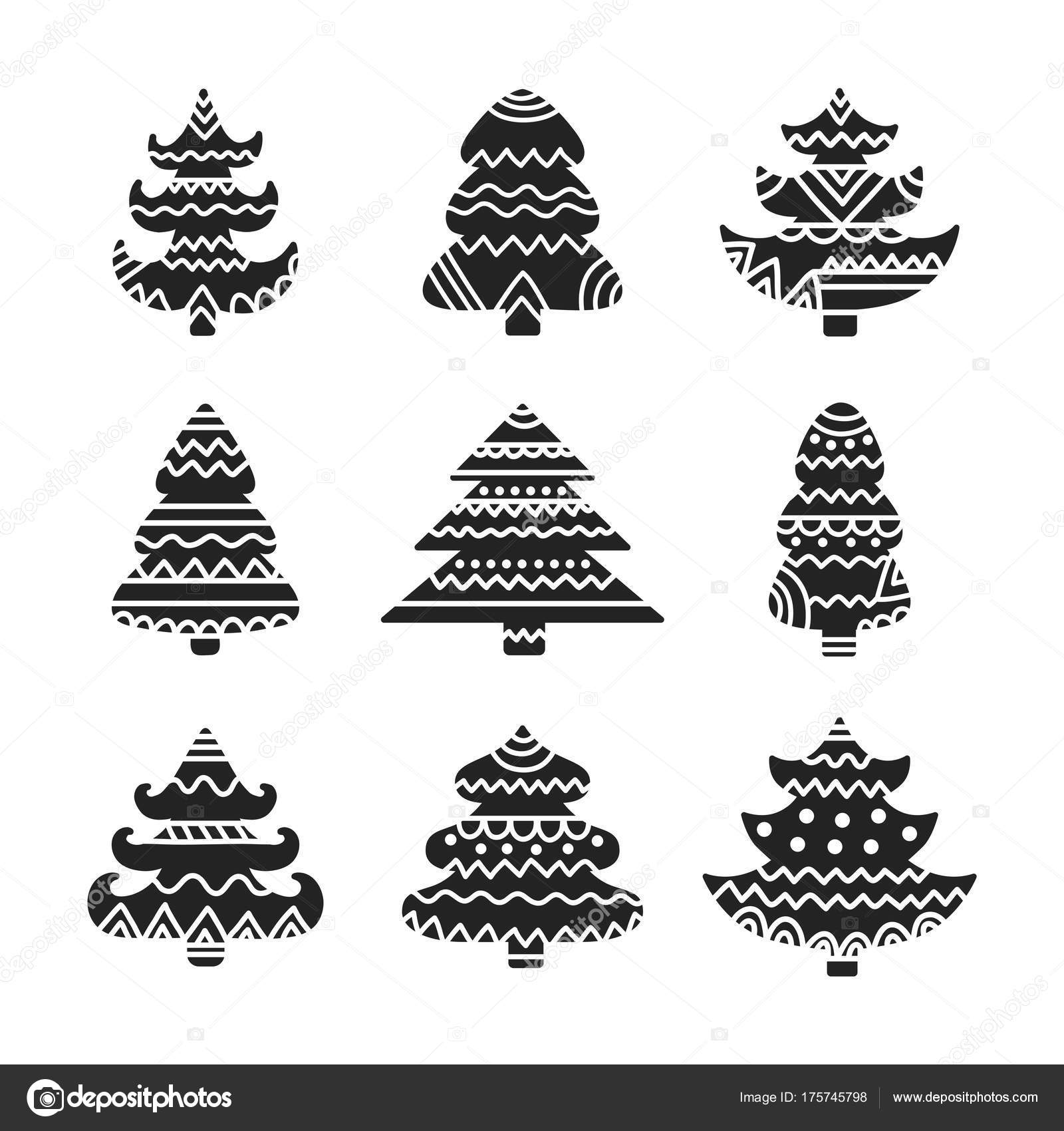 Insieme Dell Albero Di Prichristmas Bianco E Nero Vacanze - Download