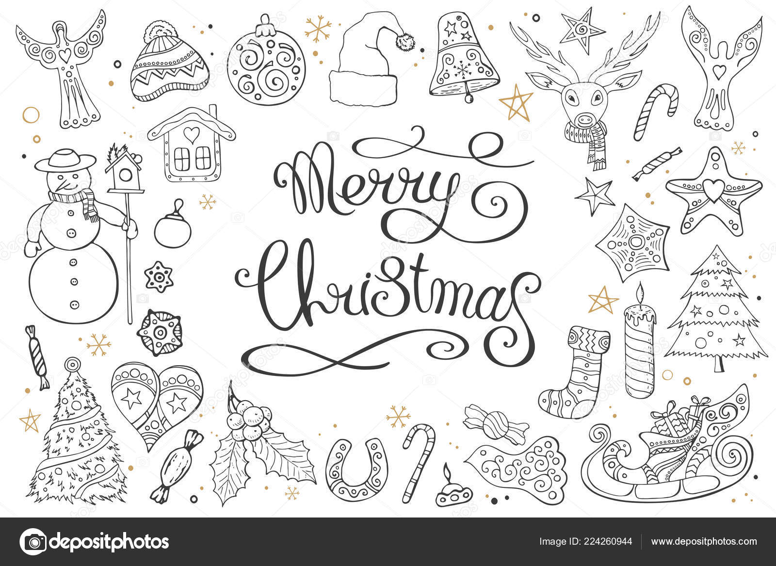 Disegnata A Mano Doodle Vettore Linea Di Natale Arte - Download