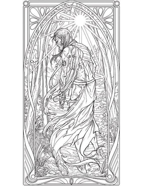 Zombie Sunrise Art Nouveau Inspired Coloring Image 8 5 Inches X 11 Inches - Download