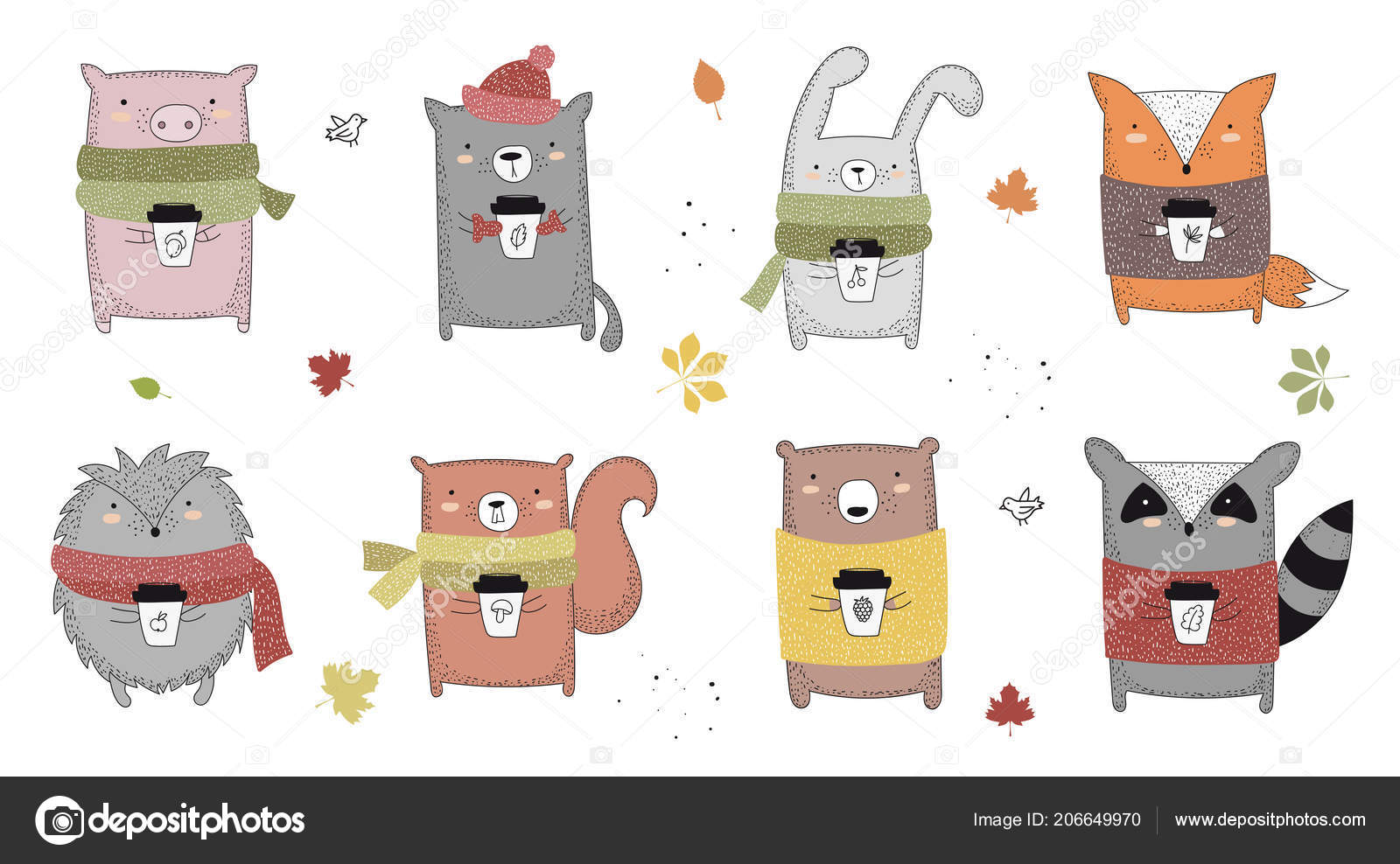 Accumulazione Vettore Linea Disegno Animali Autunno Maglione - Download