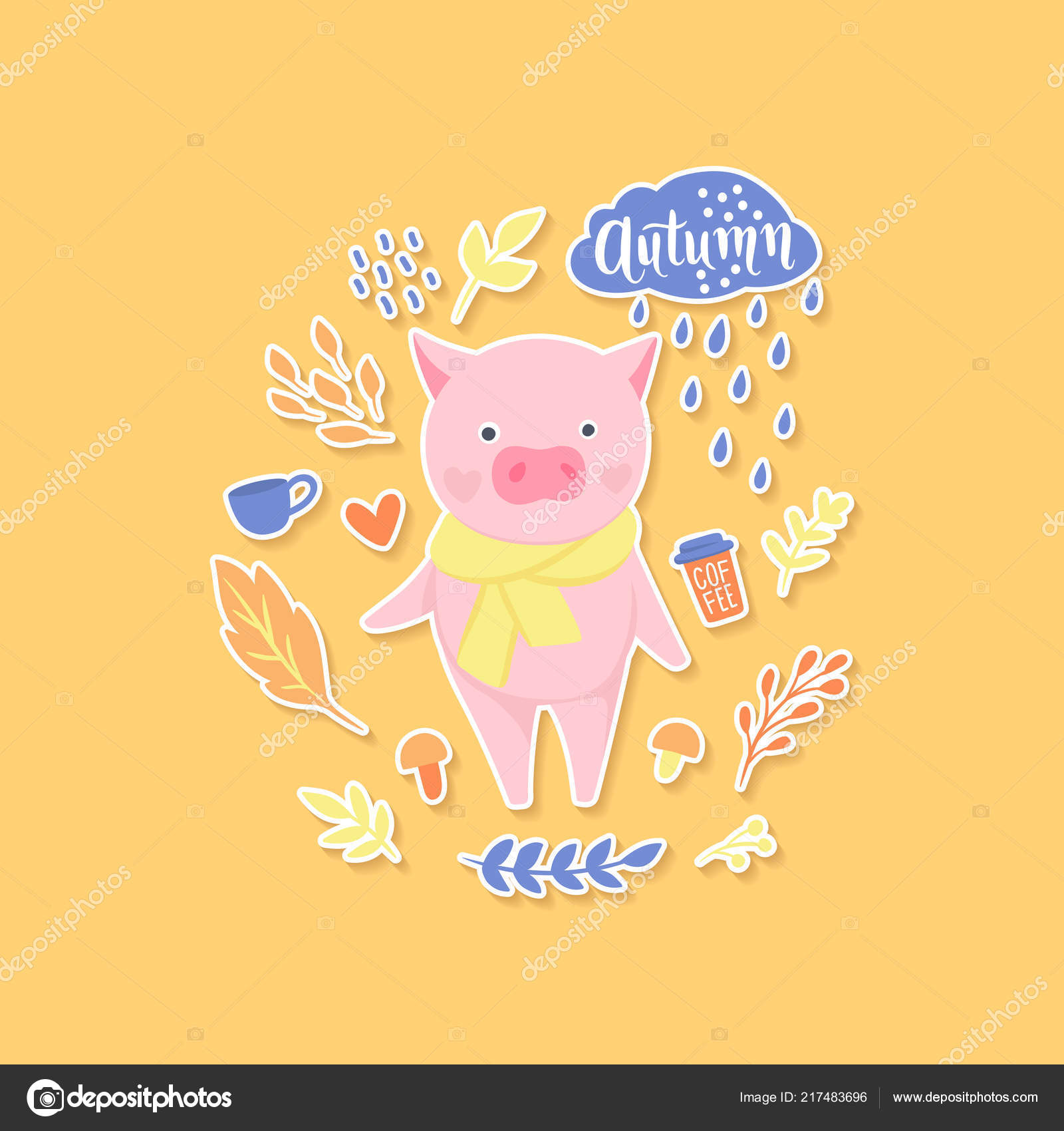 Maiale Sveglio Di Vettore Moda Animali Disegno Di Autunno - Download
