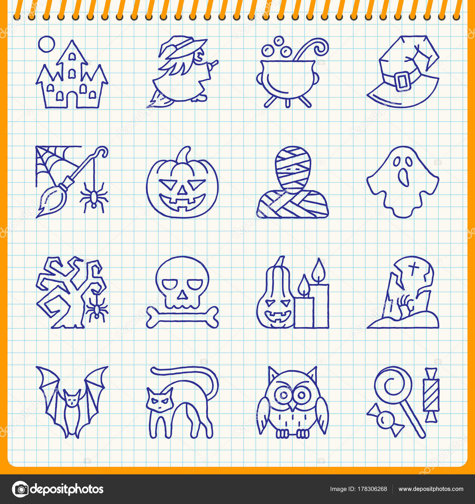 Icona Di Halloween Linea Imposta Effetto Penna Disegnato A - Download