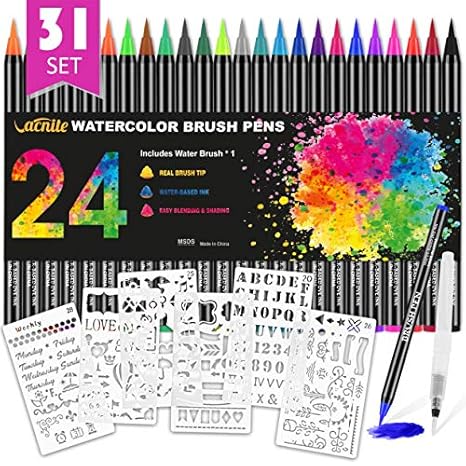 Vacnite Pennarelli Acquerello 24 Pennarello Ad Acquerello Con Punta In Nylon Flessibile 1 Pennarello Acqua Da Colorare Calligrafia Disegno E - Download
