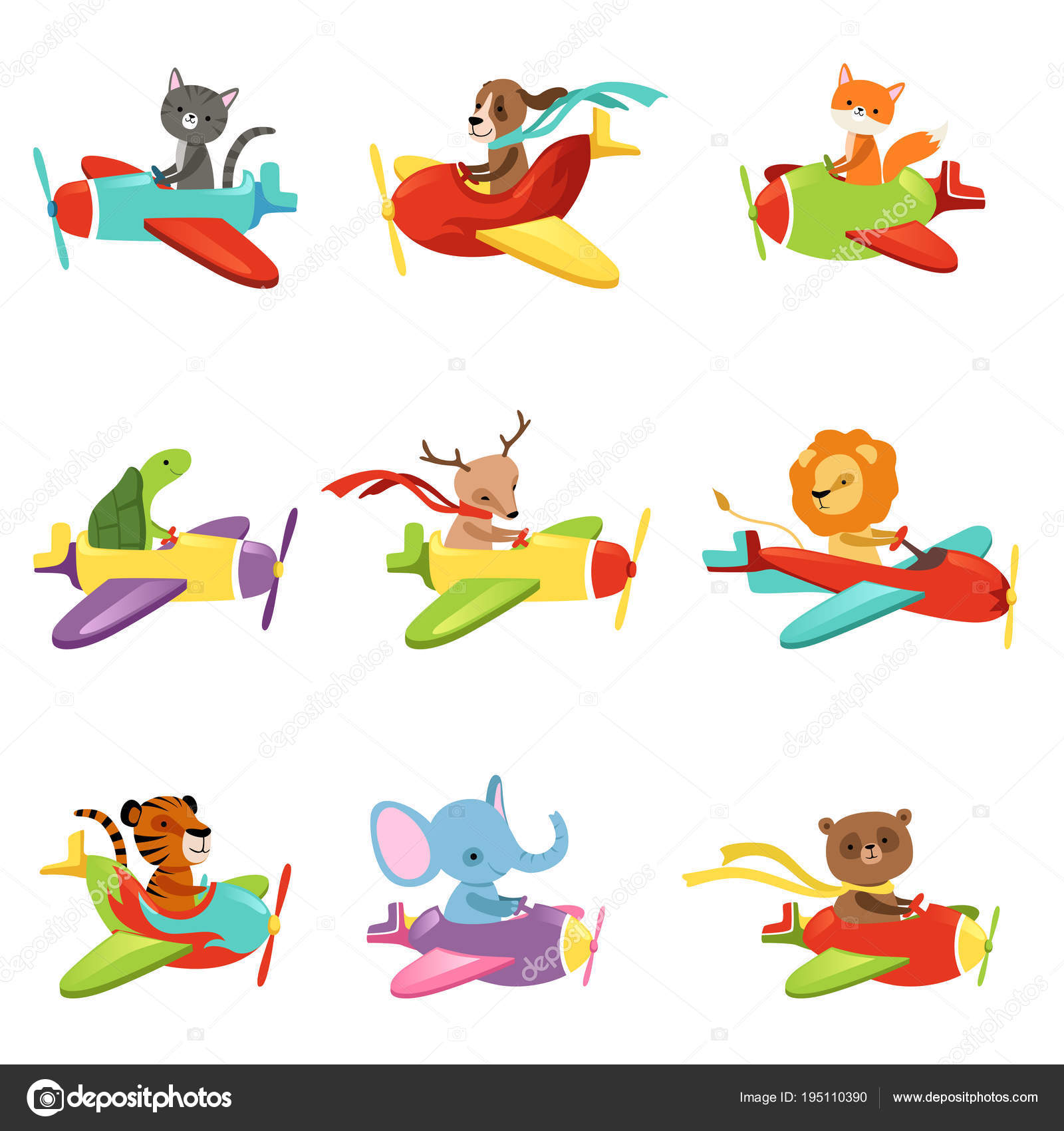 Vettore Aeroplani Colorati Piatto Vettore Fissato Con - Download