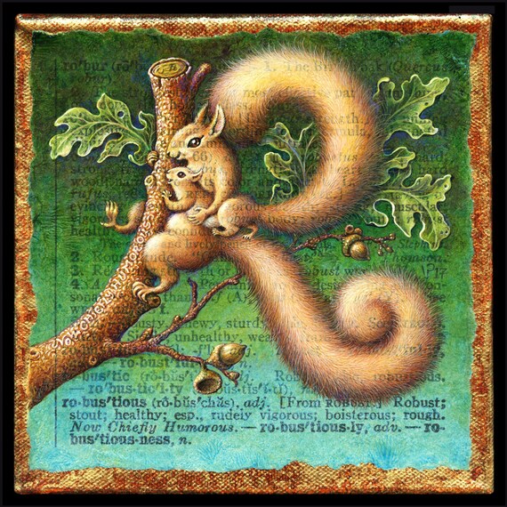 Gli Animali Del Bosco Dipinto Robustious Per I Genitori E Bambino Scoiattolo Sul Ramo Di Quercia Arte Natura Regalo Amante Degli Animali - Download