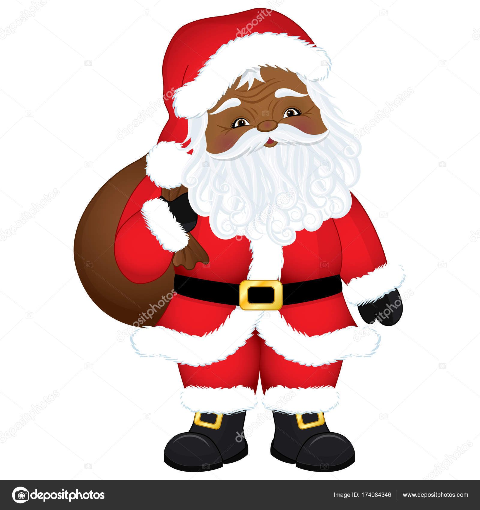 Cute Cartoon Afroamericano Il Babbo Natale Con Sacco - Download