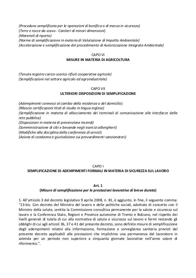01 Semplificazioni Sicurezza Sul Lavoro Disegno Di Legge - Download