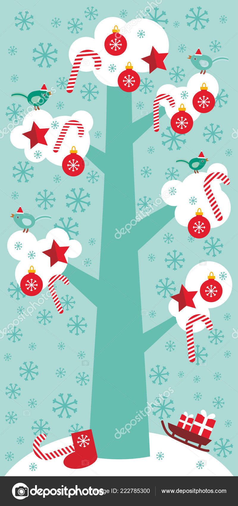 Cartolina Natale Disegno Grande Albero Con Neve Bianca Sui - Download