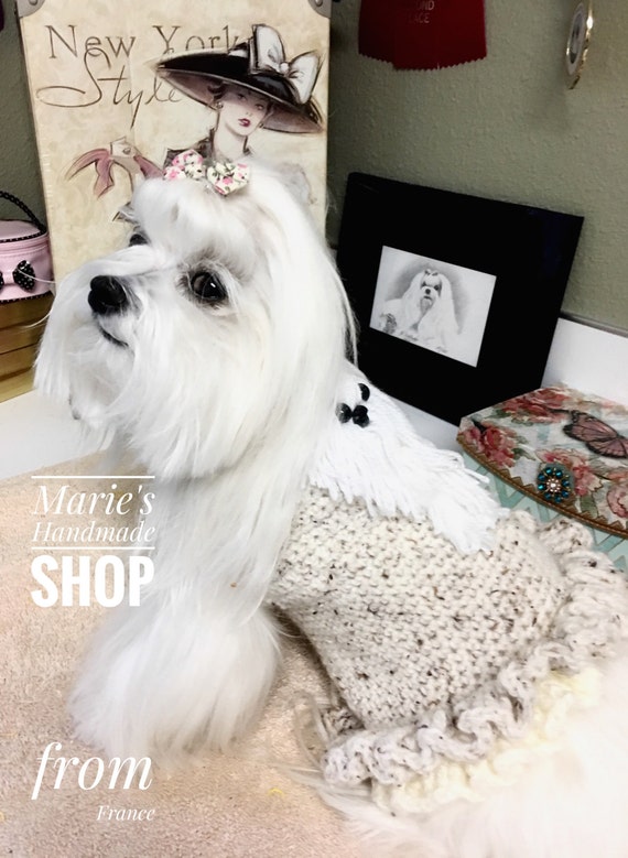 Abito Con Motivo Di Cane Maltesi Sul Retro Indossato Da Belle Crochet Piccolo Cane - Download
