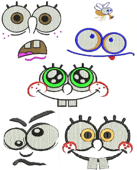 Cartoon Characters 6 Faces Embroidery Designs Instant Download Filled Stitches Design 1760 - Download