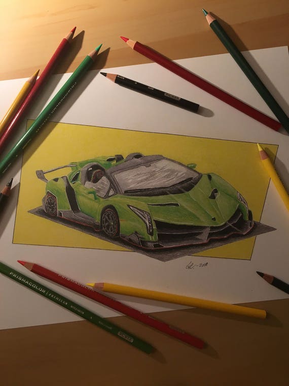 Disegno A Matita Lamborghini Veneno Disegno Stampa Illustrazione Dell Automobile Colore - Download