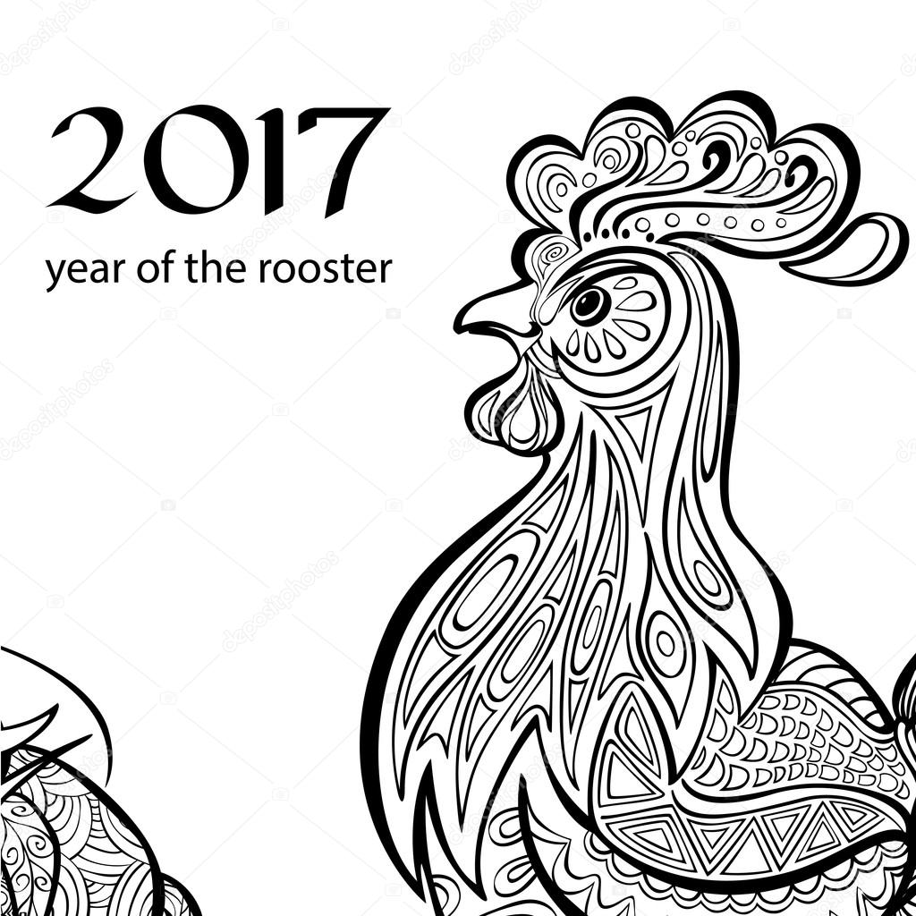 Anno Del Gallo Immagine In Bianco E Nero Un Nella Zentangl - Download