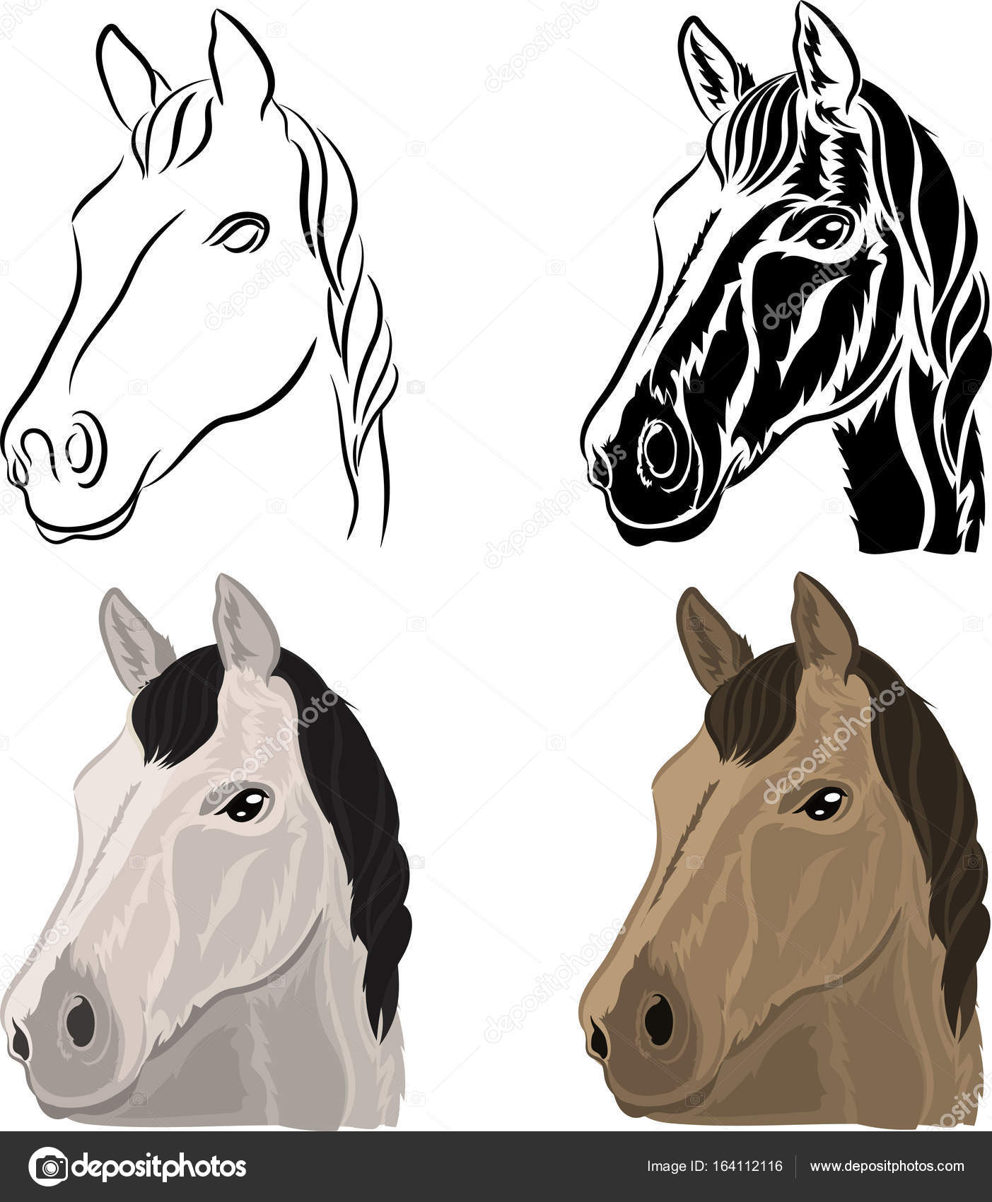 Una Serie Di Disegni Di Una Testa Di Cavallo Vettoriali - Download