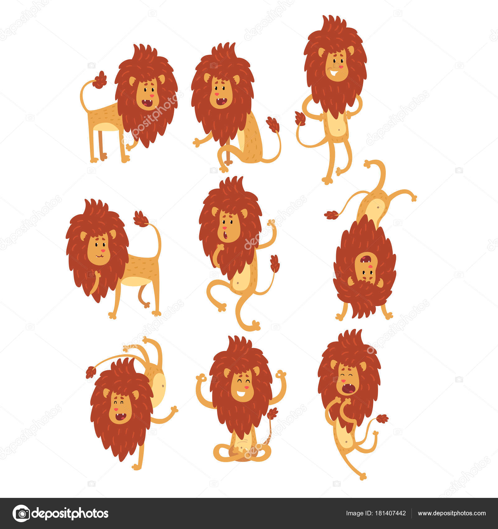 Set Di Leone Africano Divertente In Diverse Azioni Cartone - Download