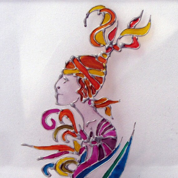 Piccola Lastra Di Vetro Dipinta A Mano Su Vetro Con Donna In Stile Liberty Art Nuveau Piccola Lastra In Vetro Temprato Fatto In Italia - Download