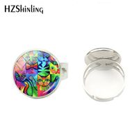 2019 Dipinti Famiglia Di Gatti Colorati Vintage Disegni Astratti Anelli A Cupola In Vetro Anelli Cabochon Regolabili In Argento Moda - Download