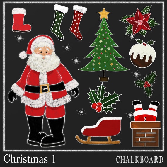 Lavagna Di Natale Clipart Di Gesso Lavagna Santa Disegno Card Design Download Immediato - Download